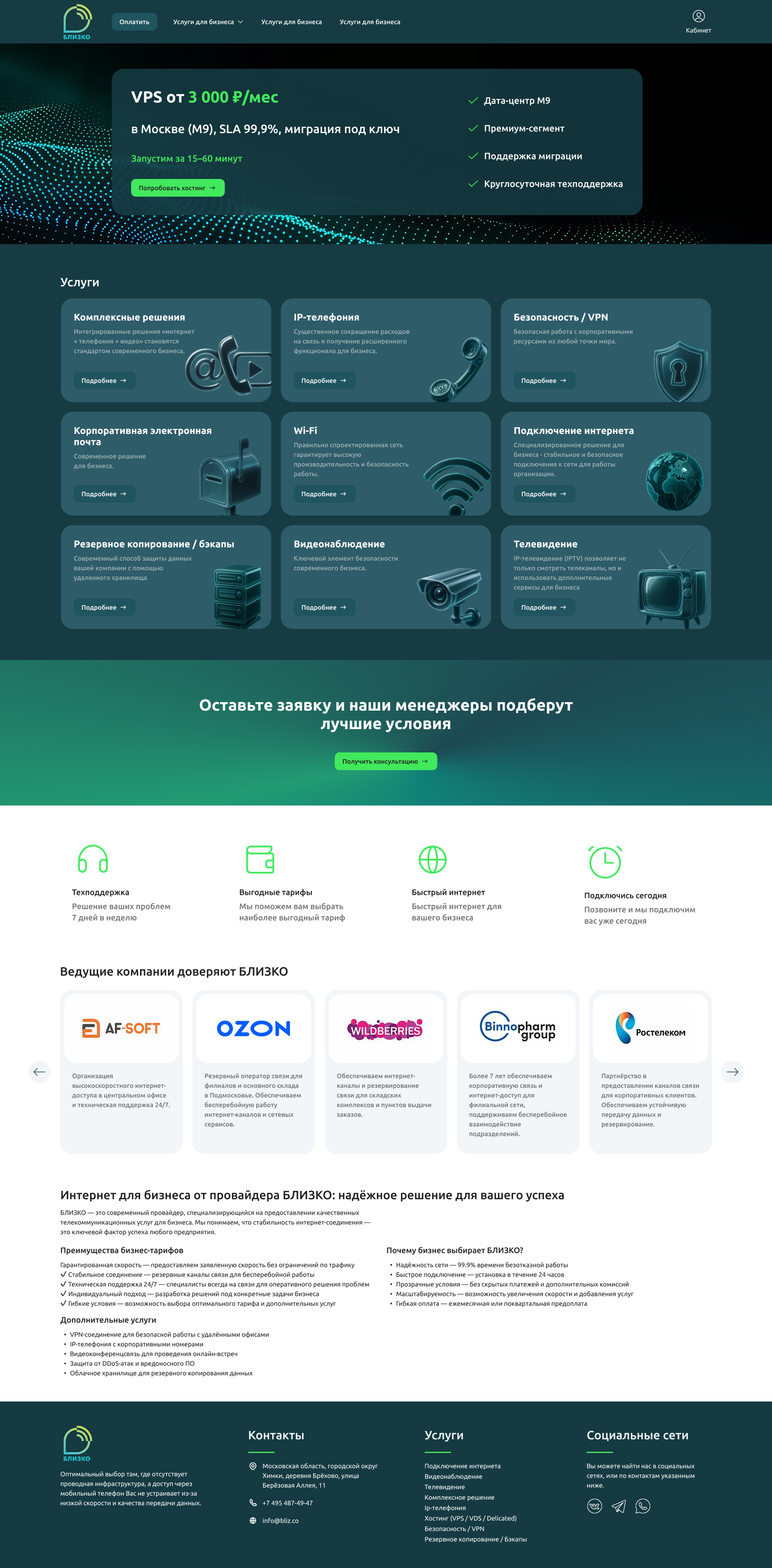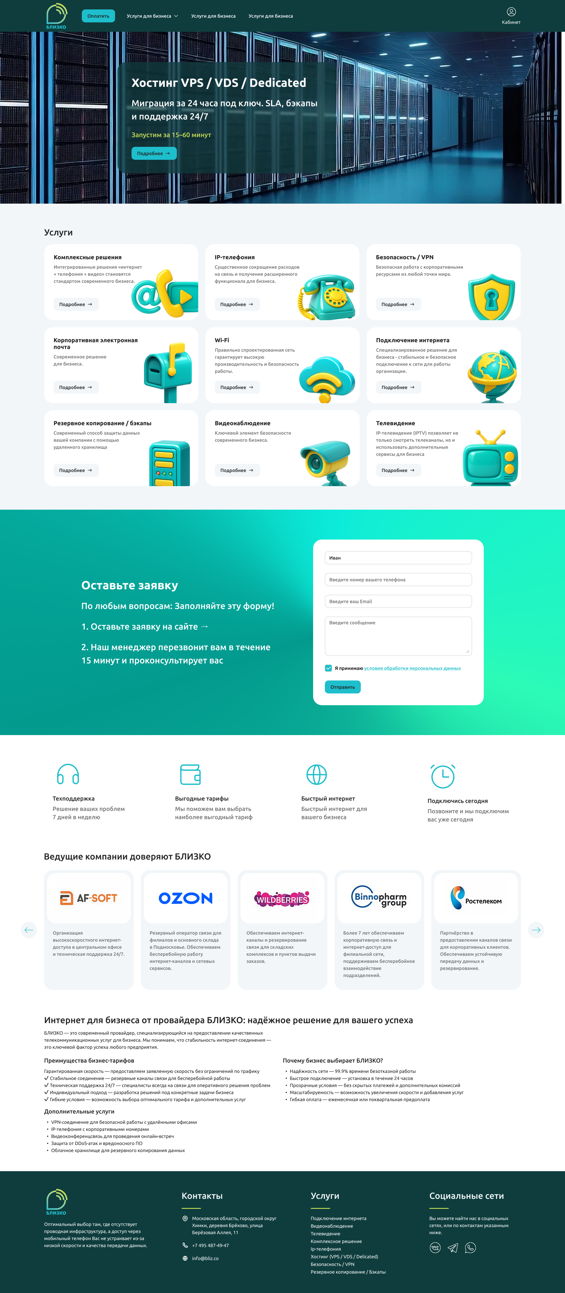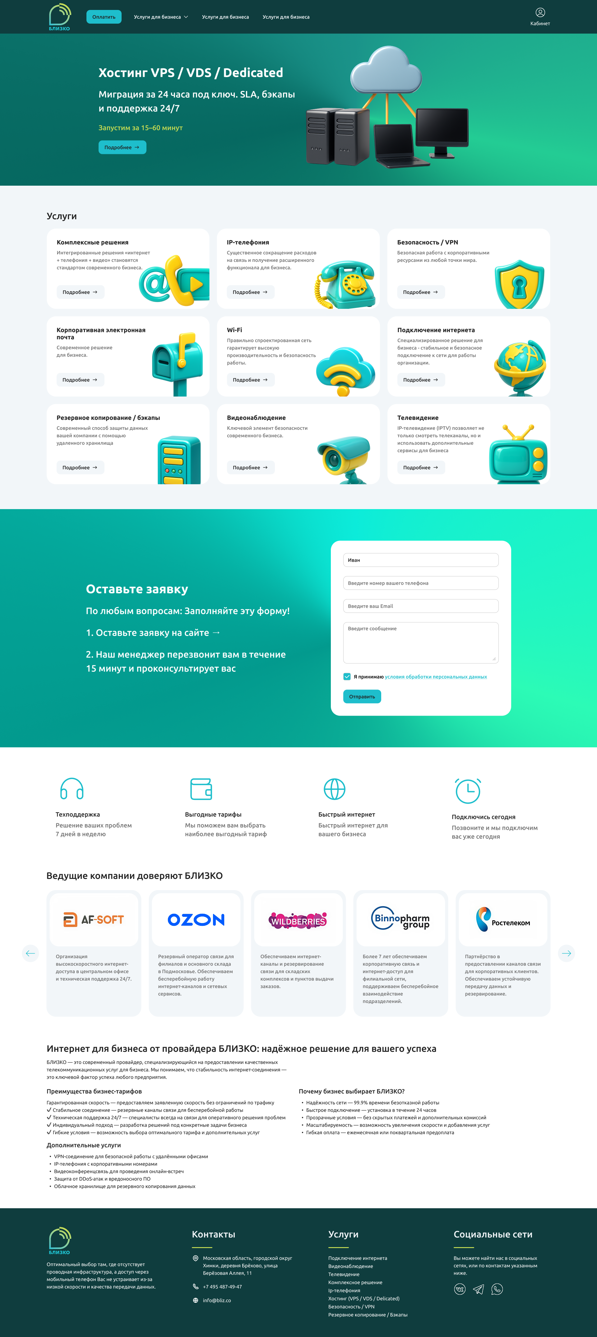 Команда SkeekS завершила работу над редизайном сайта хостинг-провайдера «Близко» — одного из ведущих поставщиков услуг хостинга и серверных решений в Москве и Подмосковье.